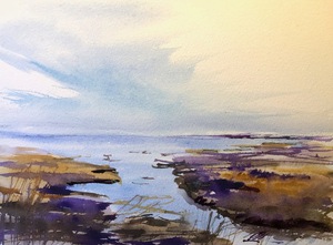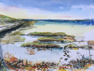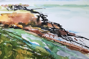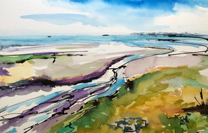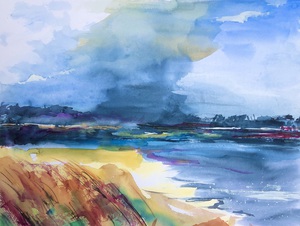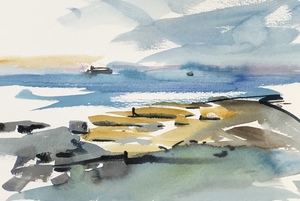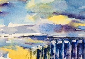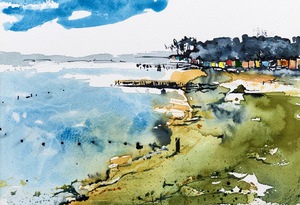 2022Aan de kust waait het altijd een verfrissend windje. Aquarel op 300 grams papier.
