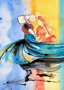 2021Dansen, folkloregroepen, kleurrijke dansen weergegeven in aquarel.
