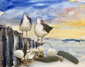 2020Meeuwen, zonsondergang, echte stenen, echte schelpen