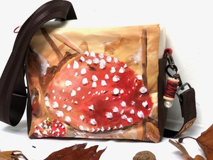 2021Paddestoelen als in het kinderliedje, rood met witte stippen. Hand/schoudertas, gevoerd, ritssluitng, leuke accessoires
